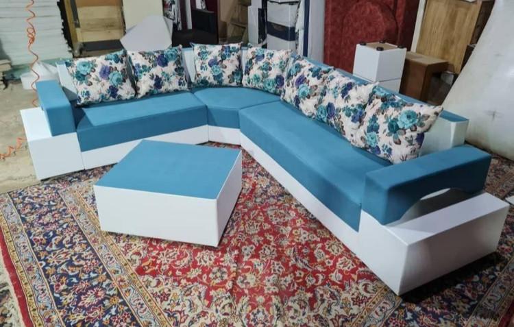 مبل ال راحتی هفت نفره دسته دوبل با جلومبلی نشیمن اسفنج ویژه نرم
