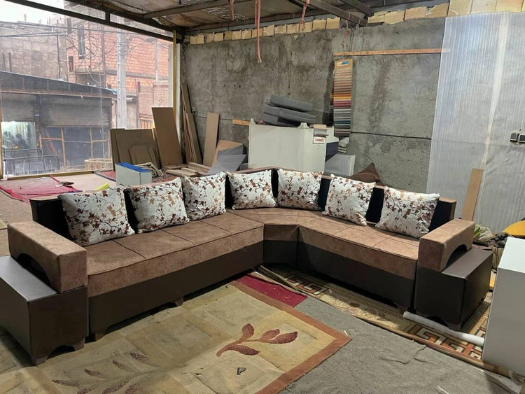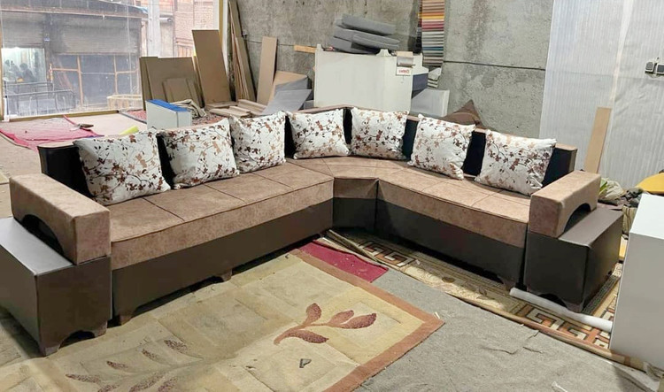 مبل ال دسته دوبل هفت نفره با جلومبلی با پارچه خارجی